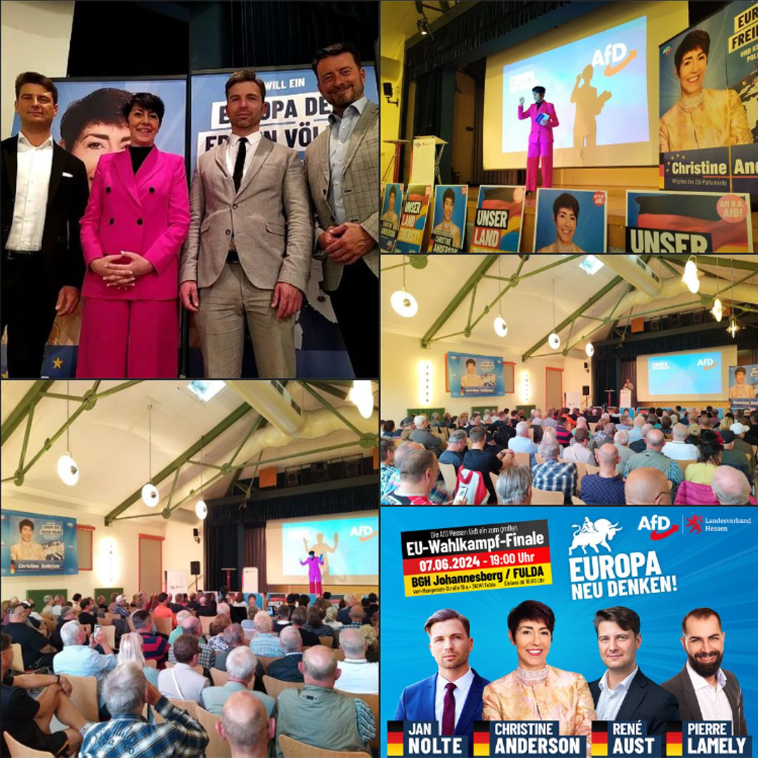 π₯π€ The Hessian AfD election campaign finale last night in Fulda was awesome! The hall was packed with around 200 people. Latecomers got standing room only. A great atmosphere. My colleagues Jan Nolte, RenΓ© Aust, Pierre Lamely & Andreas Lichert were in top form & the audience was full of energy. A biker group from Thuringia visited us & a lady from Switzerland traveled 500 km just to meet me in person. Wow! I am thrilled.