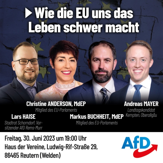 🎤💬 Am Freitag, den 30.06.23 komme ich um 19:00 Uhr nach Augsburg. Gastgeber ist die AfD Augsburg-Land und zusammen mit...