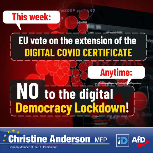 This dreadful event shows more than clearly what will still be possible with the Digital COVID Certificate here in Germany, in Europe and of course worldwide as a whole. It is not about protecting the health of the population, but about protecting governments and politics from inconvenient citizens and their legitimate use of democratic freedoms and fundamental rights. Democratic participation will then only be granted to those citizens who have previously been issued a "Digital Basic Rights Voucher" by the government. Everyone else instead will be sent straight into a “Democracy Lockdown”.
