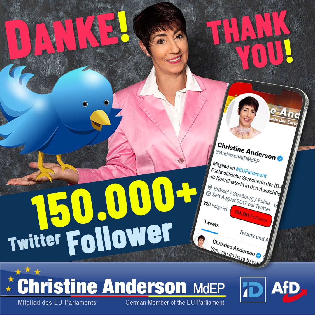 Today I am extremely pleased to announce that I have just passed the 150,000 followers mark on my Twitter account ( @AndersonAfDMdEP ). Many thanks for this to all my followers. Knowing that so many of you are interested in my political work will be an incentive for me to continue to throw myself into the fight with all my might.