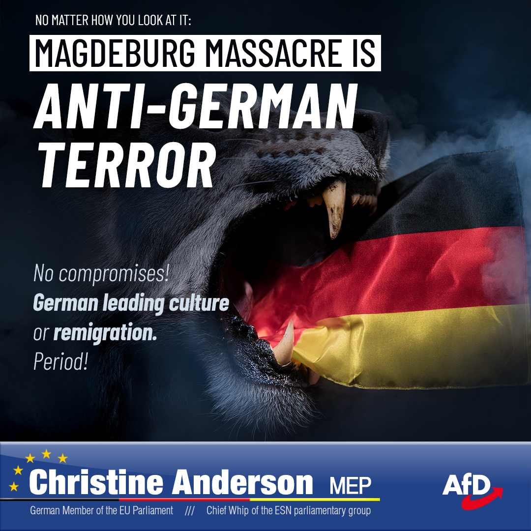 German Leitkultur (leading culture) and identification are the new criteria, because Magdeburg proves that everything else does not work. At the same time, we need effective controls at the German borders and the construction of a consistent Fortress of Europe. Only if we finally regain our self-confidence and strength and resolutely enforce our positions will we have a chance.