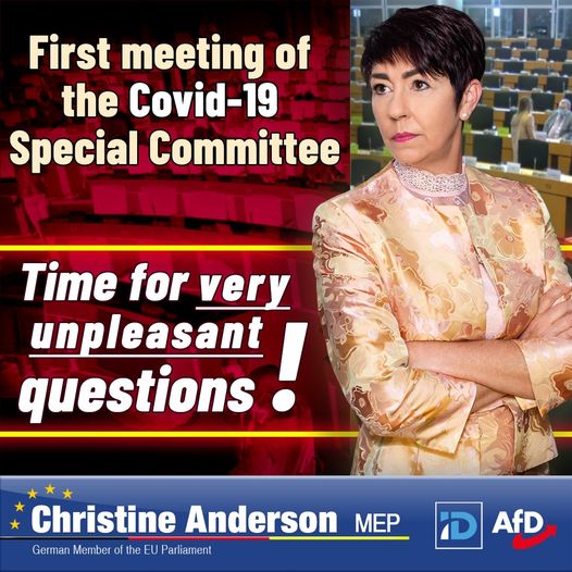 "We have witnessed a pandemic of fundamental rights restrictions on an unprecedented scale. Originally, fundamental rights were considered guarantees against an encroaching state, but in the pandemic, fundamental rights have become privileges that governments handed out like 'treats' to all the citizens who dutifully went along with every order, no matter how moronic it was. We will raise very uncomfortable questions about this in the Special Committee, including about the licensing and contracting of the vaccines, whose contracts are still only extensively blacked out, even to us MEPs," said Christine Anderson.