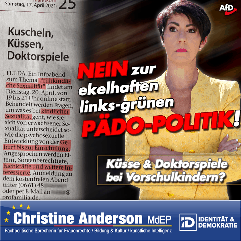 Welchen Wert soll es haben, einen ganzen Abend lang über die sog. Sexualität von Vorschulkindern ( 0-6 Jahre! ) zu informieren? Kinder sind Kinder. Sie sind unschuldig. Sie lernen das Leben gerade erst kennen, und das Letzte, was sie dabei brauchen, sind Erwachsene, die sich mit auffallendem Interesse über die vermeintliche Sexualität von Klein- und Vorschulkindern Gedanken machen. Das einzig wirklich Sexuelle, das bei der schon seit Jahren von links-grüner Seite forcierten sog, „Frühsexualisierung“ im Raume steht, ist – neben dem gezielten Versuch, die Seele und das Schamgefühl von Kindern möglichst frühzeitig zu brechen und damit formbar zu machen – offenbar der Versuch, die notgeile Gedankenwelt sexuell fehlgeprägter Erwachsener vom Typus „Fachkräfte und weitere Interessierte“ unter einem pseudowissenschaftlichen Anstrich zu tarnen.