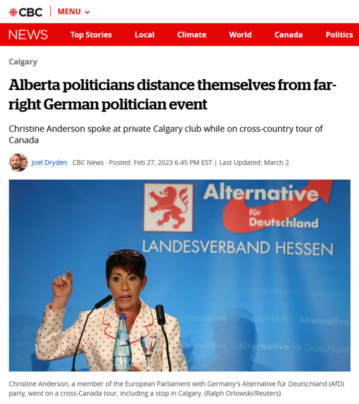 Als dann ein bekannter links-liberaler Journalist der „Toronto Sun“ den Staffelstab übernahm und die vermeintlichen Erkenntnisse diverser linker Aktivistengruppen in einem Leitartikel verwurstete und sogar das Gauland-Zitat sowie die Causa Verfassungsschutz erwähnte, ging in Kanada die Bombe hoch.