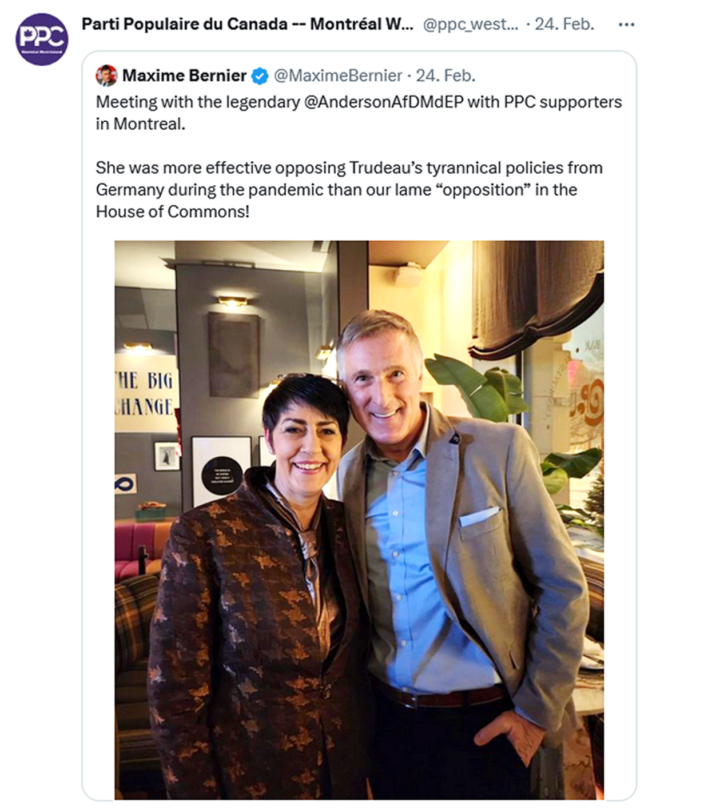 Ich erhalte freundliche Unterstützung vom Vorsitzenden der PPC - Maxime Bernier.