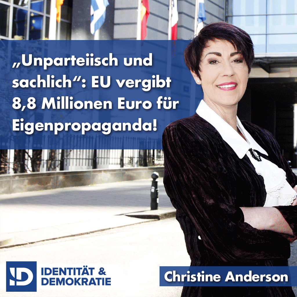 Das EU-Parlament schreibt 8,8 Millionen Euro für „unparteiische und sachliche“ Berichterstattung über sich selbst aus. Für Christine Anderson ist das der blanke Hohn: